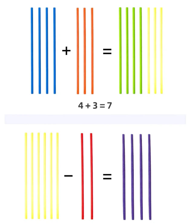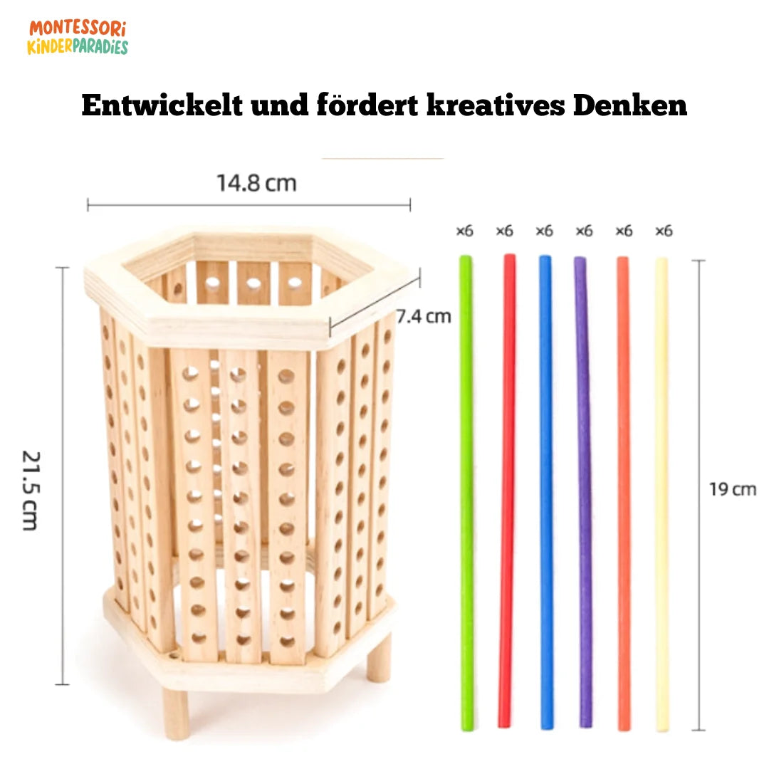 - Farbe: Bunte Holzstäbe in 6 verschiedenen Farben